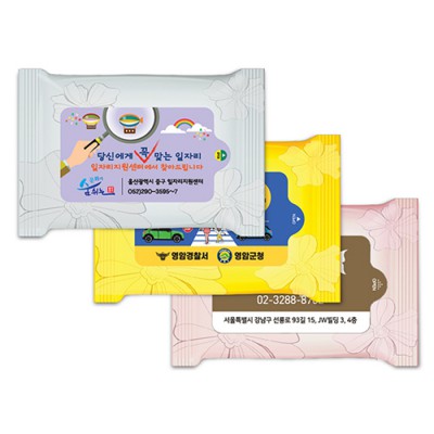 - 원색 3종 렌덤(유광)물향기 물티슈 5매용(10매,15매,20매)