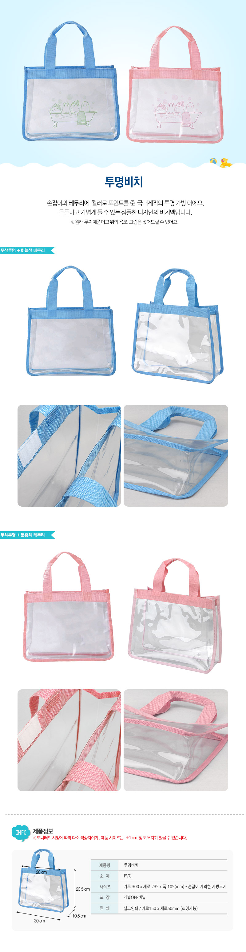 •300×235×105mm •양면 무지 / 청투명, 투명 •손잡이, 테두리색 변경 가능 •1색 100개 이상 ※ 사이즈는 ±2cm정도 오차가 있을 수 있습니다.