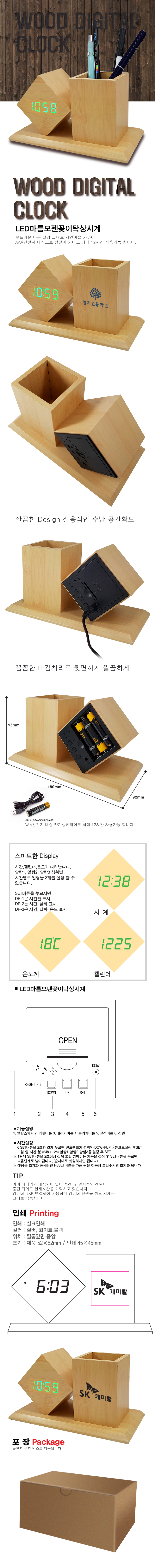 LED 마름모 펜꽂이 탁상시계