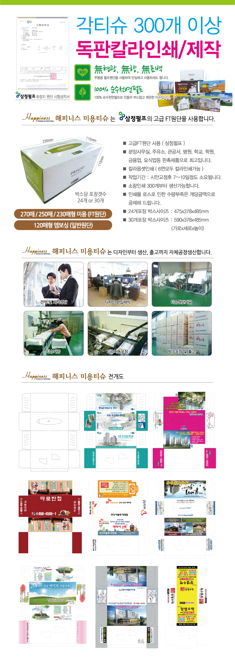 •규 격 : 235 X 115 x 115mm ·1BOX당 수량 : 30EA ·1천개 이상 제작가능 ·수량별 가격 별도문의 ※기본 모나리자 원단 사용