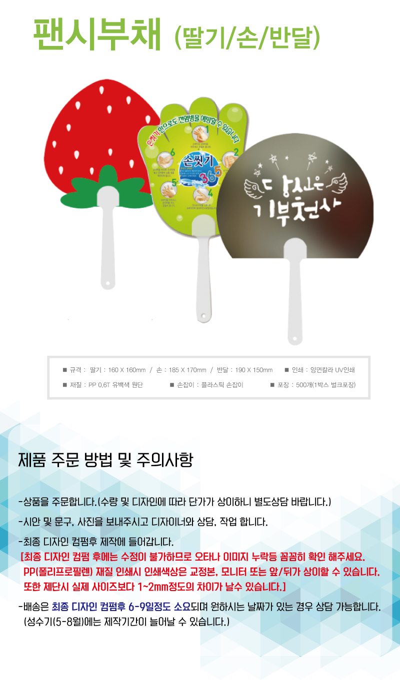 팬시 부채 (딸기/손/반달) / 수량별 단가 문의 요망