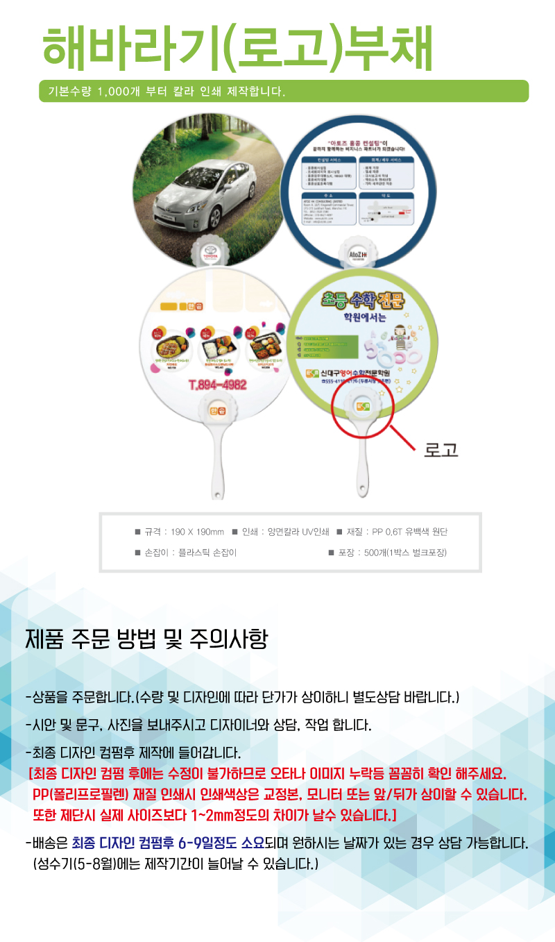 해바라기(로고)부채 (수량별 단가 문의 요망)
