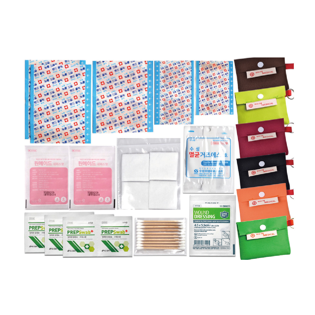 *알콜솜6p *드레싱밴드 *멸균거즈2p *10p면봉 *4P절솜 *구급케이스