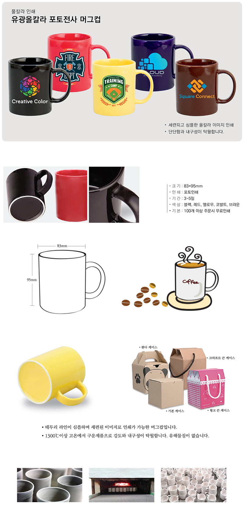 •기 본 : 100개 이상 / 앞면인쇄기준 •Size : 83Øx95mm ※ 1도인쇄 포함 / 2도이상 칼라인쇄 별도 문의