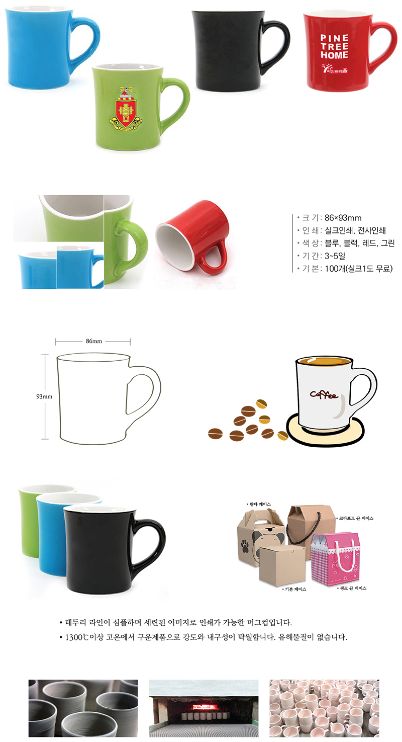 •기 본 : 100개 이상 •Size : 86Øx93mm ※ 1도인쇄 포함 / 2도이상 칼라인쇄 별도 문의