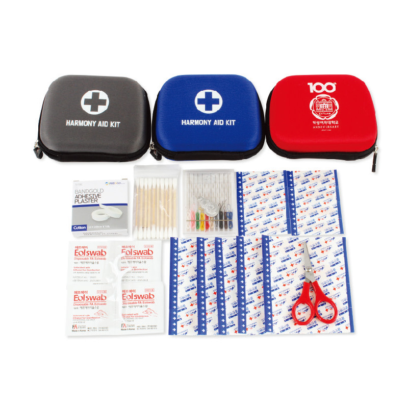 •반창고, 면봉세트, 알콜스왑 4매, 가위, 쌈지세트, 소형밴드 8매, 표준밴드 20매 •종이케이스 •SIZE : 120X96X46(mm) •수량 : 200EA •1BOX 100개 ※상품 내 모든 구성상품들은 수급상황에 따라 예고없이 변동 될 수 있습니다.