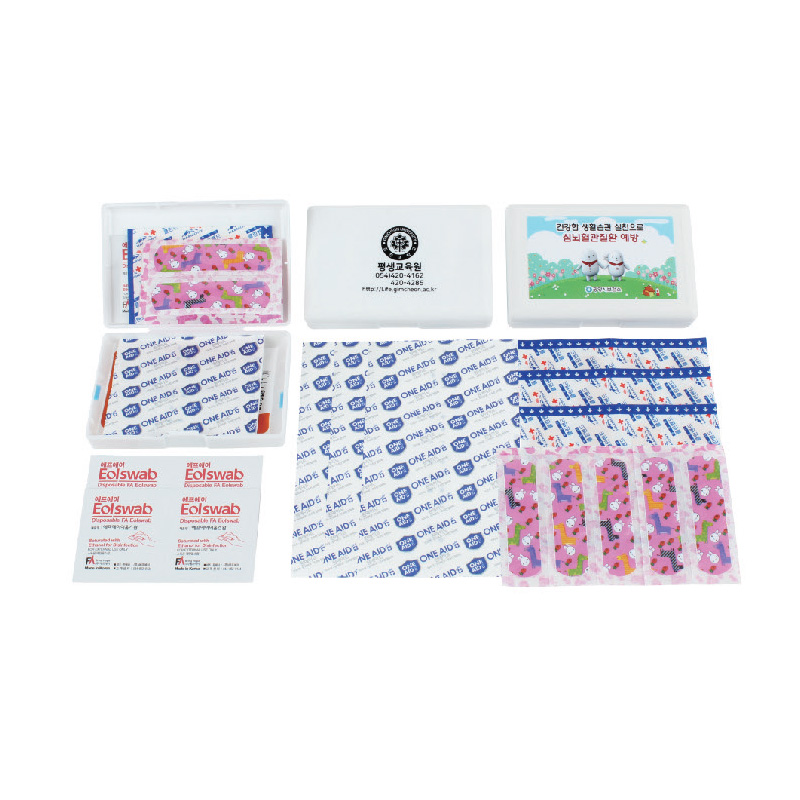 •SIZE : 115X75X22(mm) •수량 : 400EA / 1박스 : 250개 •스티커 비용 별도 • 알콜스왑 4매, 표준밴드 12매, 방수밴드 12매, 캐릭터표준밴드 5매 ※모든 내용물들은 수급상황에 따라 예고없이 변경될 수 있습니다.