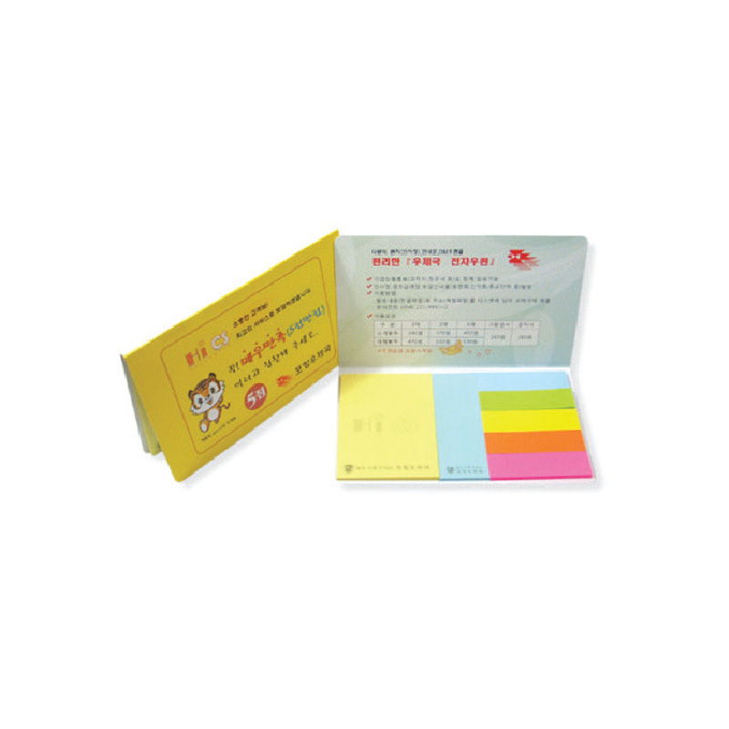 •표지: 130x80㎜ •내지: 50x76/25x76/형광5색 •최소수량: 1,000개