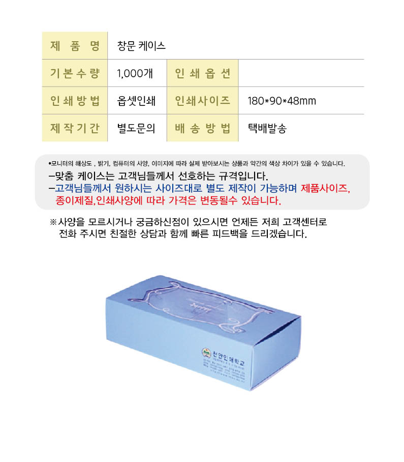 •기본수량 2,000개 •Size : 180x90x48 mm