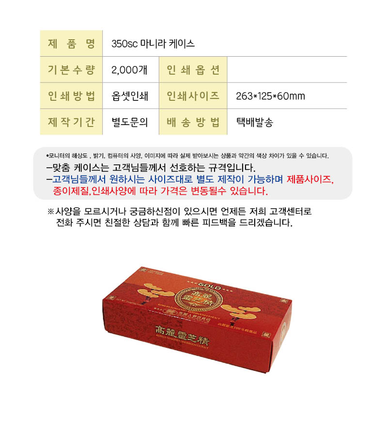 •기본수량 2,000개 •Size : 263x125x60 mm