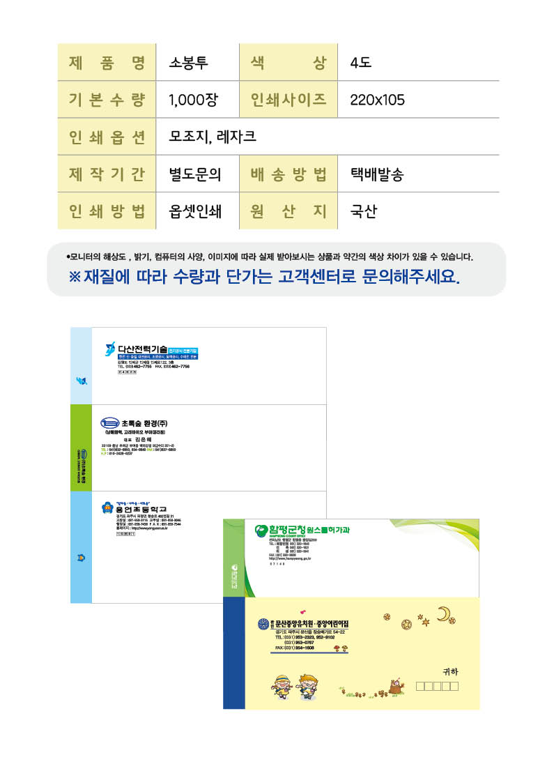 •사이즈 : 220x105 •기본 1,000장, 4도 ※옵셋4도 / 8도 ※이외 사이즈 별도문의
