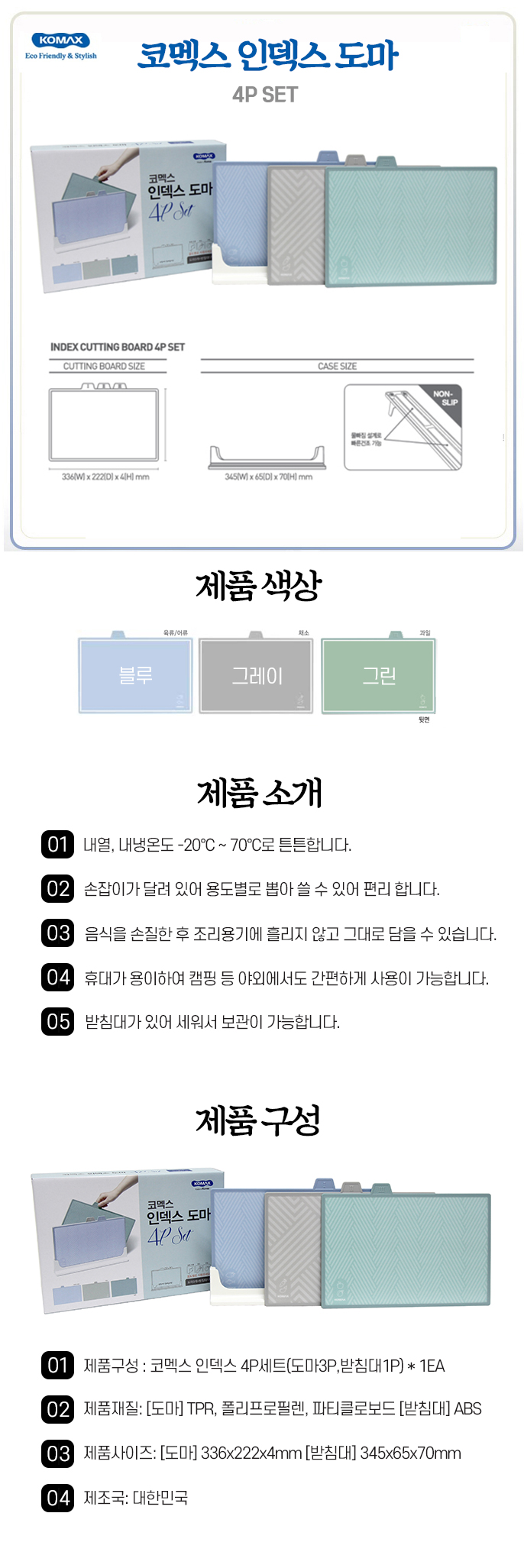 편리하고 유용한 코멕스 인덱스 도마 4P세트