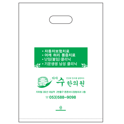 | 기타사항 | •기본수량 1,000개 · 규격 : 250x350(mm) •디자인편집비별도 · 재질 : HDPE유백원단/링펀치형손잡이 · 인쇄 : 단면1도만가능 |