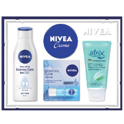 | 기타사항 | • 익스프레스 바디로션 125ml 1개, / 립 모이스춰 4.8g 1개, 니베아 크림 60ml 1개, / 스트롱 프로텍션 크림 75ml 1개 •입수 : 24개(케이스 포함) ※자수/실크인쇄비용추가 ※부가세/배송비별도 |