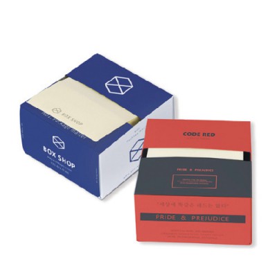 | 기타사항 | •표지 85 x 85 x 50mm •내지 70 x 76mm •매수 100 매 •표지 컬러인쇄, 내지 먹1도 •기본수량 500개 |